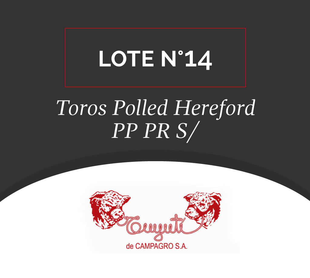 Toros Polled Hereford Lote N° 22 RP 8000, RP 8042 y RP 8058 https://www.youtube.com/watch?v=honMbDr8IKA Haga su pre-oferta en el formulario de abajo. Realizando una pre-oferta obtendrá un 5% de descuento sobre el precio final a pagar. Tanto si resulta adjudicatario a través de la pre-oferta como ganando la oferta el día del remate. RP 8000 [...]